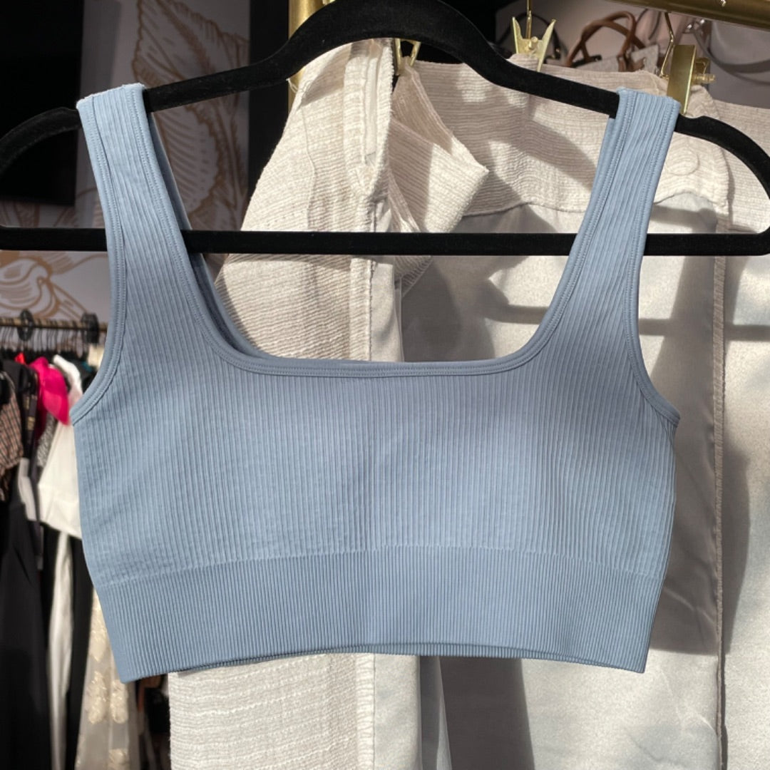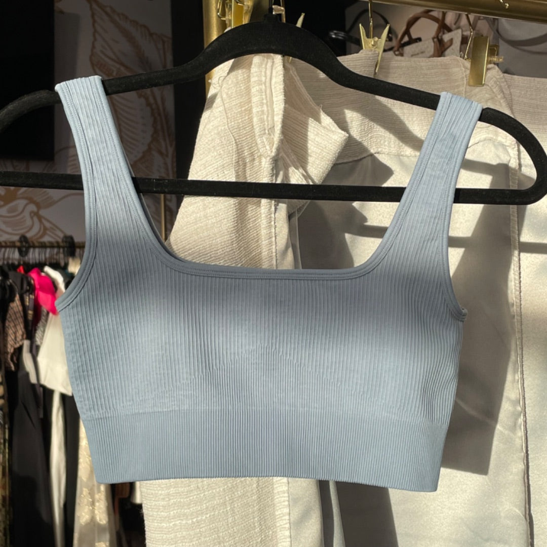 OQQ | Women's Light Blue Ribbed Compression Bike Shorts and Bra Set | Size: S