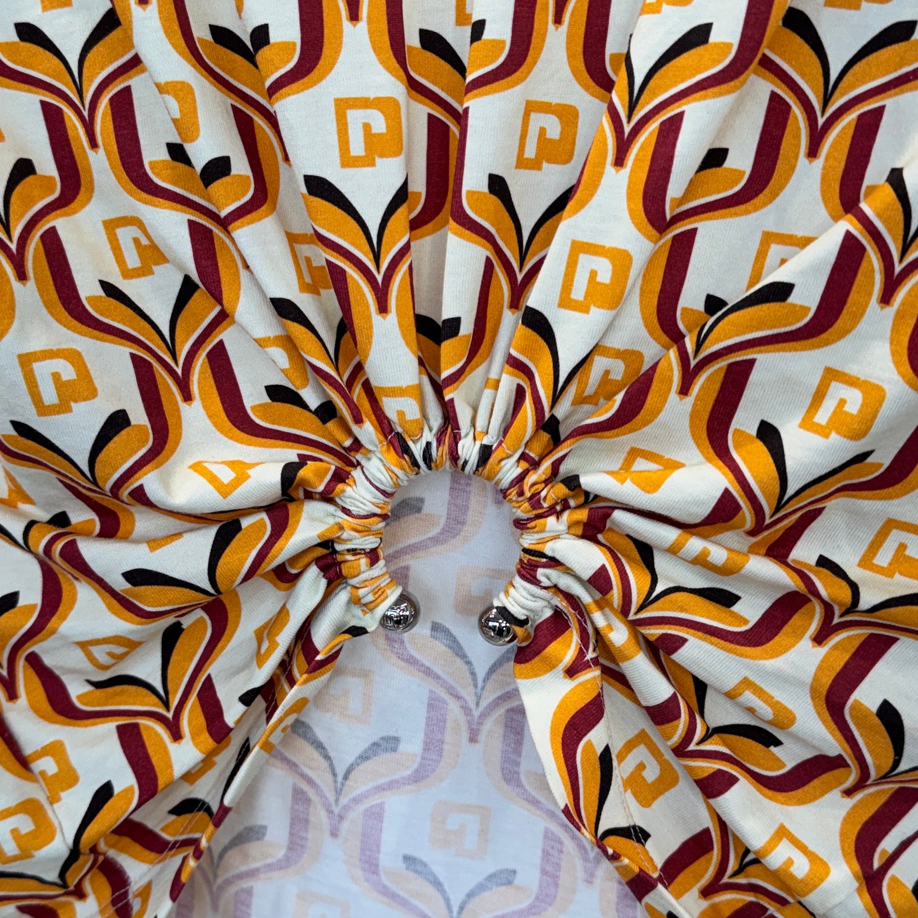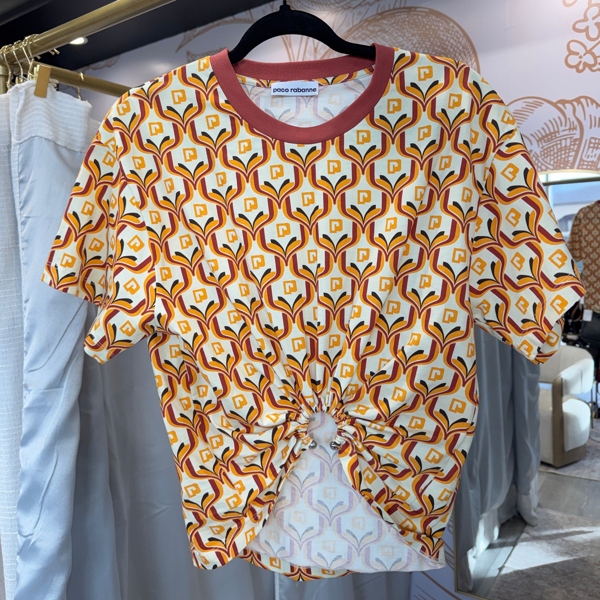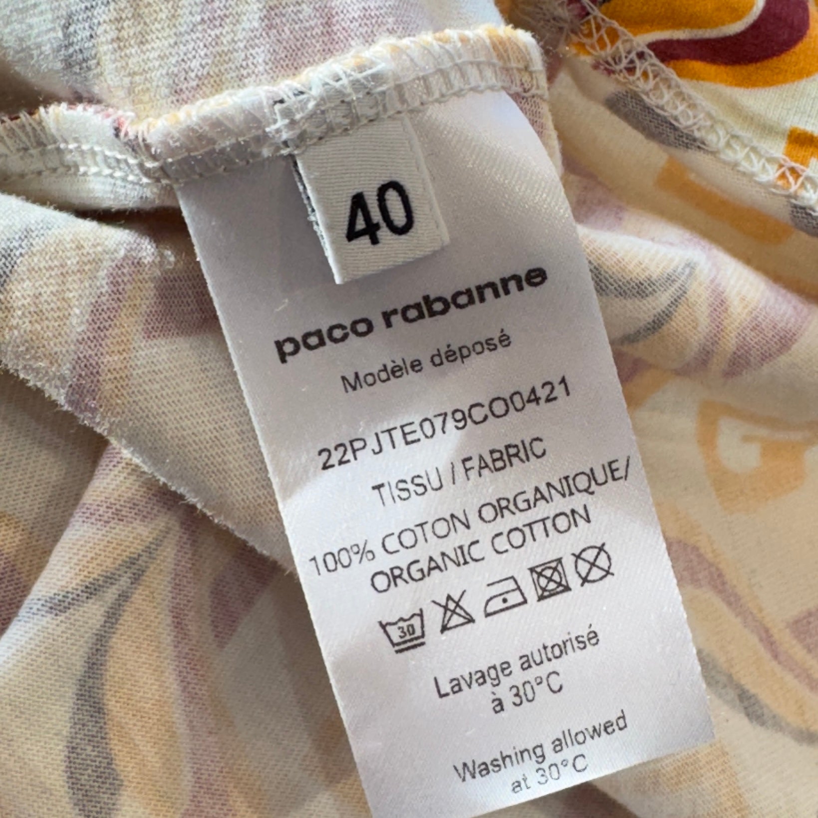 Make a statement with this striking Paco Rabanne tapestry top, a standout piece that blends artistic craftsmanship with modern design. Crafted from 100% cotton, this top features a richly textured cream and red tapestry fabric that feels both elevated and wearable.