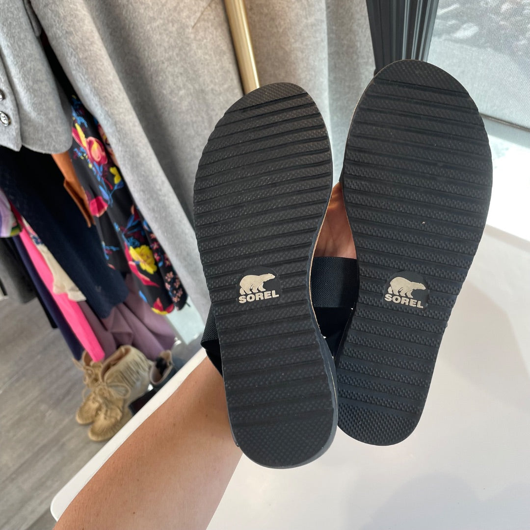 Sorel | Women's Black Cross Strap Flat Sandal | Size: 7