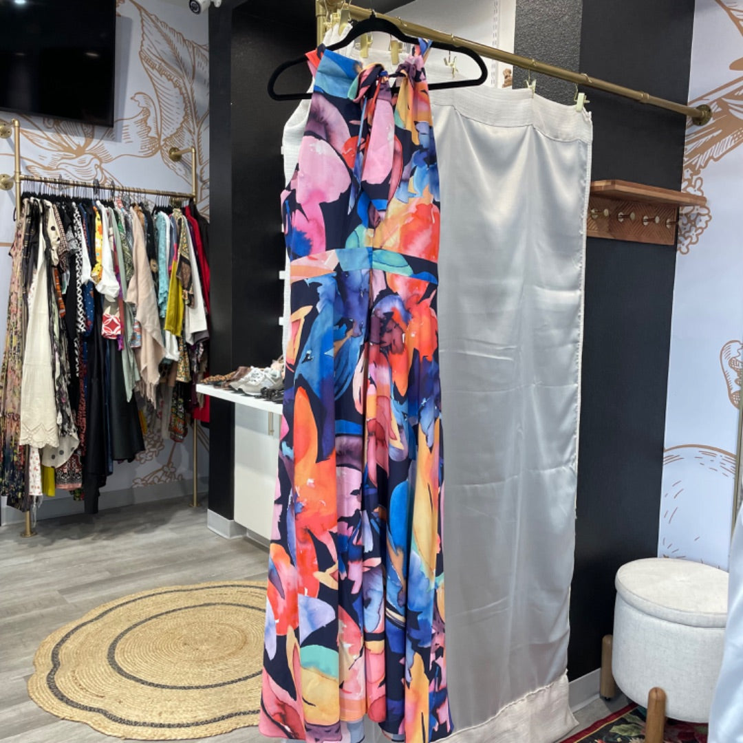 Tahari | Women's Colorful Paint Halter Maxi Dress | Size: 8