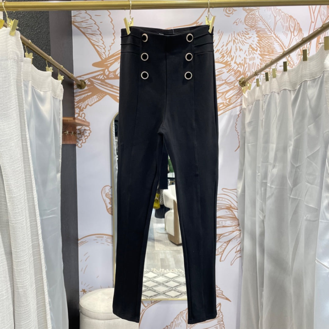 Zara | Women's Black Fitted Pants with Velvet Buttons | Size: M