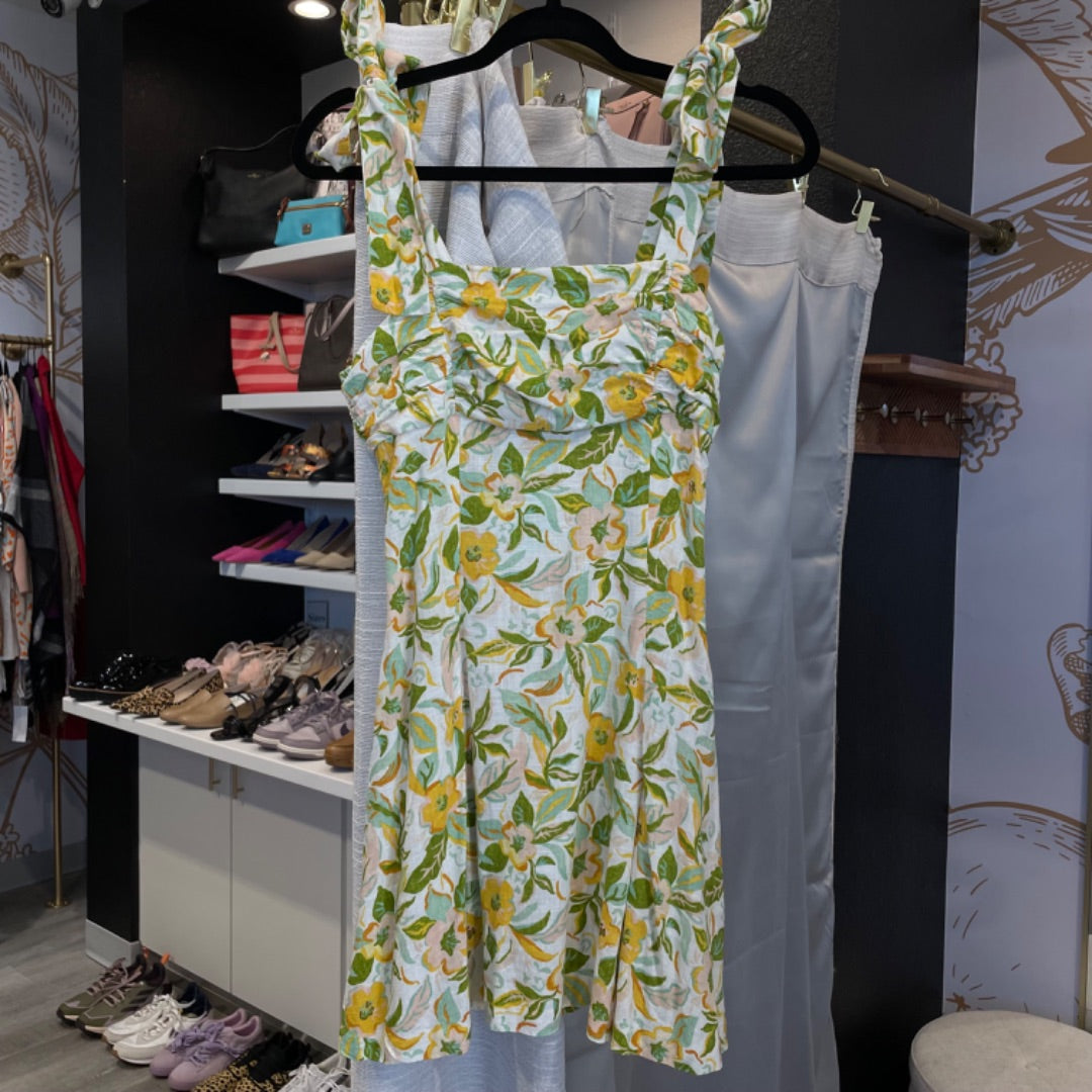 Zara | Women's Green and Yellow Floral Print Mini Dress | Size: S