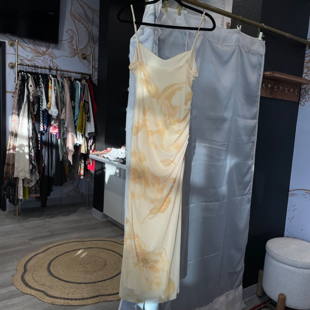 Zara | Women's Long Ruche Flower Print Maxi Mesh Dress | Size: S